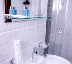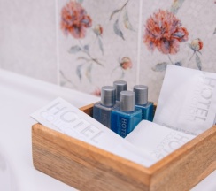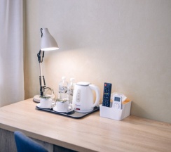 Для комфортного проживания предусмотрены: комплект бокалов, гостевой набор для приготовления чая/кофе, индивидуальный косметический набор, халат, тапочки, бутилированная вода.