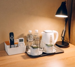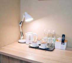 Для комфортного проживания предусмотрены: гостевой набор для приготовления чая, индивидуальный косметический набор, тапочки, бутилированная вода.