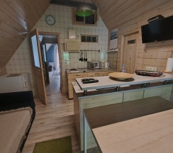 Отличный гостевой дом. Заселили в семейный домик, со своей кухней, хорошей спальней и комнатой для детей под потолком. Чисто, комфортно