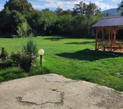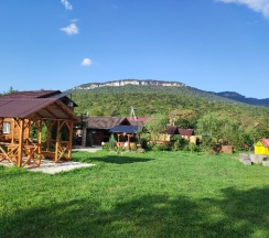 Понравилось: Находится в очень тихом месте, вокруг поют сверчки, иногда гавкают собаки. Отличный вид на горы, рядом речка Дах. Деревянные дома из цилиндрованных брёвен. Мангал и качели, детская площадка к вашим услугам. Нам очень понравилось!!!!
