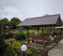 Отличная база отдыха. Остались очень довольны отпуском. Арендовали 2 котедж, у нас была своя беседка, мангал, в домике есть отопление, с собой можно не везти уголь, все можно купить в пятерочке, либо на рынке рядом. Вид шикарный, вокруг горы, рядом котики, которых зовут Себастиан (черно белый), Педро(черепаховый) и кошечка Шакира.