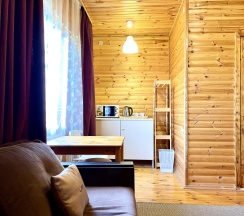 За такие деньги хороший отель, в номере чисто. Много мангальных зон, рядом лес, в номере тепло очень.Красивый вид из окна. Есть общая кухня со всем необходимым