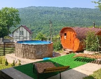 Место отличное для остановки с дороги. Номера комфортные, просторные, чистые. Кухня есть со всеми прибамбасами! Баня с бассейном за доп плату. Заказать еду,можно с доставкой до базы в Мезмай Пицца🍕 завтраки,супчики, пицца, кофе! 👍