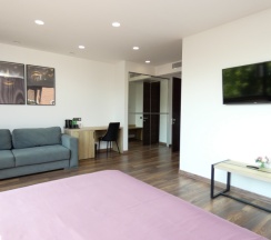 Комфортабельный номер с удобной двухспальной кроватью, двумя прикроватными тумбочками, большим диваном с ортопедическим основанием, оборудованным рабочим местом, просторной ванной комнатой с окном, большой меблированной лоджией, современным телевизором, бесплатным Wi-Fi, холодильником, набором для чая. В ванной комнате: ванна с тропическим душем, санузел, умывальник, фен, комплект полотенец (в том числе пляжные), халат, тапочки, фен, косметические принадлежности. По запросу гостя возможно предоставление дополнительного места для детей от 0 до 2 лет (кроватка с гипоаллергенным бельем).
