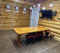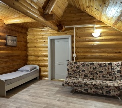 Апартаменты двухэтажные в русском стиле, 80 кв.м – для 8 человек, с отдельным входом. Отлично подойдут для большой семьи или друзей. На первом этаже расположена спальня с большой двухместной кроватью и кресло-кровать, просторная гостевая комната: мягкий уголок, который в разобранном виде представляет собой двуспальное место, телевизор. Кухонная зона и обеденная зона, холодильник, микроволновая печь, электрочайник, набор посуды, эл.плитка. Ванная комната. Второй этаж: просторная спальня, большая двуспальная кровать и полуторка. ТВ (кабельное телевидение). К услугам гостей: бесплатный доступ в интернет. Апартаменты располагаются на 1 этаже (20 ступенек). Шумным компаниям у нас отдых запрещен! С животными не заселяем. Дети до 1 года проживают бесплатно (при наличии документа подтверждающий возраст). При заселении вносится обеспечительный залог в размере 5000 рублей. При выезде залог возвращается.