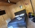 Разместились в самом большом доме - Барнхаус, 60 кв.м. В доме есть посуда, туалетно-косметические принадлежности, жаль, что на сайте не указали про наличие полотенец, пришлось зря везти с собой. Домик тёплый, уютный, рассчитан на 6 человек, стеснённость не ощущалась.