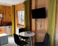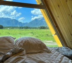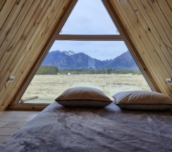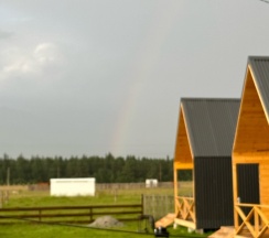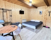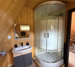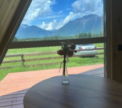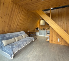 Прекрасное расположение, тишина, вид на горы, по территории бегает множество сусликов, чуть дальше пасутся коровы и лошади, виды намного красивее, чем в Аршане, для уединенного спокойного отдыха отличное место. При въезде на территорию дорога плохая, мы были в дождливую погоду, машина виляла по грязи. За полчаса позвонили, администратор сказал, что в номере ещё убираются, поэтому на территорию можно заехать в 14:00, остановились возле детской площадки, хотя могли заехать, посмотреть территорию, тем более, что там и беседка, и качели к каждому домику. В 13:40 подошла девушка, сказала, что заселение ровно в 14:00, мы согласились подождать, так как думали, что там ещё убирают (ведь заранее нам об этом сказали по телефону), однако в номере уже было убрано, но нас не пускали, 29 августа был дождь, мы перед этим промокли, можно было бы и пустить, чтобы мы хотя бы за калиткой не стояли. В домике номер 3 есть вся посуда, некоторое можно было бы заменить (сковороду), дверь в санузел не закрывалась. В целом домик понравился, белье чистое, вкусно пахнет, замечательный вид, ночью не было холодно, есть обогреватель, кондиционер, телевизор на 20 каналов, вай-фая видимо не было, либо нам не сказали. Ещё хотелось бы добавить по поводу освещенности территории, ночью кто-то из постояльцев стучался в дома, видимо не мог найти свой домик, так как темно на территории, нам кто-то дергал ручку ночью. Хотелось бы большего расположения к клиентам…