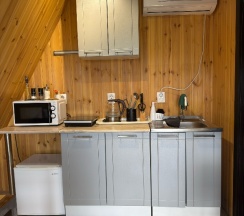 По наполнению: мангал, на кухне посуда всякая разная, микроволновка, плита, чайник, холодильник, кондиционер, вентиляция( на кухне и в сан.узле), обогреватель, теплые полы. Вода питьевая из крана. Телевизор с 20 каналами. 2 двухспальных матраса на втором этаже , диван. Постельное белье, полотенце предоставляются, белье пахнет бесподобно ( хотела уточнить каким порошком пользуетесь? 😁 хочу такой же).