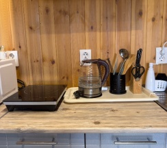 Классное место👍 номер чистый, очень приятно когда кухня чистая до мелочей…кран блестит, тряпочка и губка новые. Посуда есть вся необходимая ✨