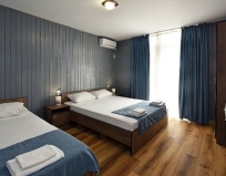 Мои впечатления, исключительно положительные, номер чистый, постельное идеальное чистое, пахнет деревом в номере что безусловно огромный плюс, в номере телевизор со всеми каналами и мультиками для детей.