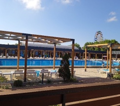 Красивая территория, чисто, басейн супер, теплая вода, лежаки и суперские зонтики. В столовой очень вкусная еда, приветливый персонал. Нам очень понравилось. Ужин с видом на море - это мечта))))