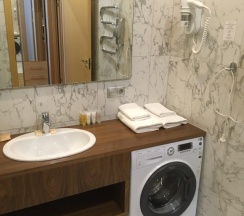 Апартаменты превзошли все ожидания, номер оснащен всем необходимым и даже более, есть кофе машина и сушильня машина, что в других отелях редкость. Я очень требовательна к чистоте санузла, поэтому порадовало, что при заезде санузел был идеально чист. Отличный матрас и белоснежное белье тоже порадовали. Приятно удивил комплимент от отеля на День Рождения, придя в номер с прогулки, нас ждала бутылка шампанского с десертом и конверт с поздравлением.