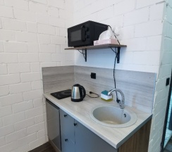 Номер двухкомнатный, есть небольшая кухня со всем необходимым.