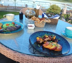 Отличное место! Большая территория, есть где гулять, мы были с ребенком. В доме есть все необходимое, рядом с домом беседка. Тут же пляж, лежаки, все водные развлечения. Когда собирались ехать был вопрос по еде, сразу отпал когда первый раз обедали при заселении, ресторан замечательный! И самое главное, вроде полный отель, но при этом тишина и людей очень мало)) Всегда свободные лежаки на пляже, места в ресторане и тд. А еще отличная баня!!