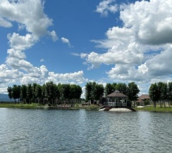 Потрясающее место для отдыха☀️ Большая, ухоженная территория🌺 Завораживающее озеро🫶 пляж, сапы, гидроцикл! Ресторан - завтраки входили в проживание… на выбор 5 разных позиций… сытно, вкусно! По меню прекрасный выбор блюд - манты с бараниной вау 🔥 Я благодарю вас за гостеприимство ❤️