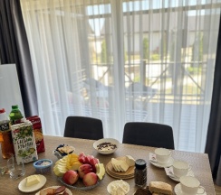 Белоснежные полотенца, постели, удобная кухня с новенькой посудой, и что улыбнуло, даже салфетка для посуды, губка и средство для мытья в удобном дозаторе🫶🏻 вся нужная посуда для обедов, и даже стол раздвижной для праздников🎉 Абсолютно новая мебель шикарный диван раскладной, кровати заправлены как в крутых отелях 👍🏻