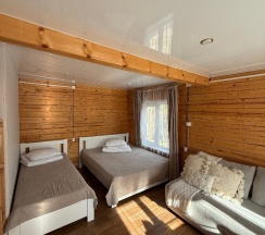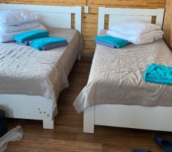 По два номера на этаж. Номера чистые и просторные. Мебель новая . Душ и туалет в номере. На территории есть мангал и беседки. Зона костра. Есть баня, за отдельную плату.