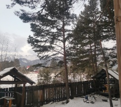Отличное мест для отдыха как семьёй так и друзьями! Нам очень понравился номер, тёплый и уютный. Единственное что долго ждали нагрева воды в бойлере... У реки вид топ.