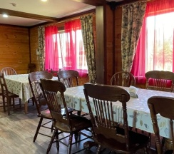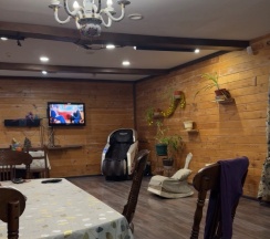 Огромный дом на большую компанию . Чистые и красивые номера . В доме есть все для комфорта - камин , огромный зал , кухня , несколько туалетных комнат с душевыми кабинами .