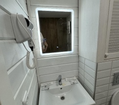 Однако местами уже видно немного "уставший" интерьер, что странно. Есть сложности с горячей водой. Она есть, но ее нужно поймать на смесителе и надеяться, что кроме вас никто больше не принимает душ из соседей. В противном случае будет постоянный аттракцион с перебоем температуры.