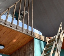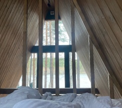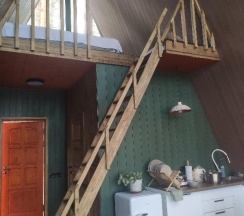 Домики это отдельная благодарность. Чувствуется, что все сделано на совесть, с душой и для людей. Достаточное количество спальных мест (диван на первом этаже, кровать на втором), хочешь спи с видом на реку, хочешь-вглубь соснового бора.