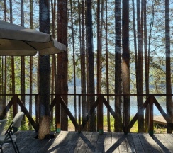И вот он самый приятный момент, когда реальность превосходит ожидания! Идеальное месторасположение: сосновый лес на берегу реки! Шикарный вид из домика и с террасы! На террасе есть купель,это огромный плюс, в любое время года можно расслабиться. Сами домики выполнены на совесть, качественно. В домике красивый интерьер, имеется всё необходимое (начиная от предметов гигиены заканчивая такими мелочами, как соль, сахар, чай , кофе и т.д). Я как человек, который восхищается всем , что выполнено своими руками, была в восторге от отдельных предметов интерьера! Сразу чувствуется, что в это место вложена душа, старания и огромные усилия!