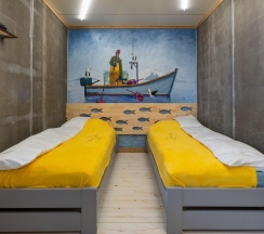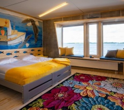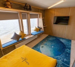 "Рыбкин дом" - это небольшой загородный комплекс для спокойного восстанавливающего отдыха, где можно провести время одному, парой или компанией. Светлые и просторные номера с оригинальным дизайном, авторскими картинами и мебелью ручной работы вызывают чувство умиротворения и спокойствия. Шикарные пейзажи с видом на Волгу, чистый лесной воздух и древесный запах. Большая гостиная с уютной мебелью, готовая собрать большую компанию у камина. Практичная кухня со всей необходимой для готовки посудой. (Холодильник, электрическая плита, микроволновая печь, чайник на 8л.). Дом также оборудован Wi-Fi, караоке, музыкальным центром, телевизорами с плоским экраном в каждой комнате, и кондиционерами. Хранение судов. 6 спален / 12 мест. Комплекс рассчитан на отдых до 12 человек. В номерах есть все туалетные принадлежности: Халаты, полотенца, тапочки, одноразовые зубные щетки и зубная паста, гель для душа, шампунь, фен.
