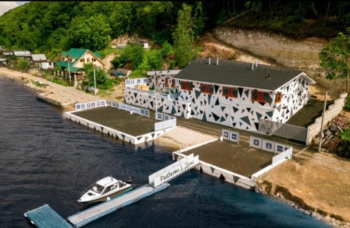 Очень интересный дизайн, идеальное место для рыбалки! К тому же очень вкусная кухня, особенно понравились шашлыки)