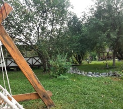 Отличное место, тихо, рядом есть небольшая речка, недалеко от основной дороги, но её не слышно. Очень красивый двор с цветами, много беседок, мангалов, качели, бассейн, за доп плату есть баня. В домике есть все, холодильник, посуда, горячая вода. Мы заселялись без предварительной брони, с нами была собака, приняли без проблем.