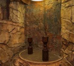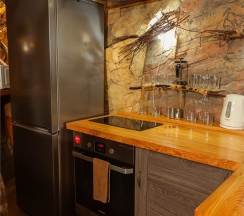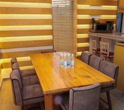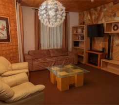 -просторная гостиная с телевизором, диванами, обеденным столом, санузел с душевой кабиной, сауна и настоящий живой камин на дровах.