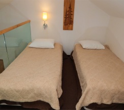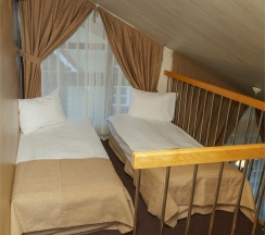 На третьем этаже две спальни, двухуровневые (с мезонином), включают детскую зону с 2мя односпальными кроватями, длинной 170 см.
