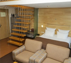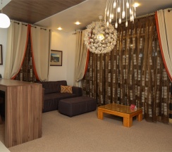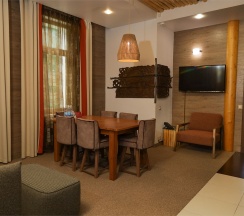 Все номера этого типа включают в себя: обеденную зону с полностью оборудованной кухней, а также две отдельные комнаты с одной двуспальной кроватью и 2-мя односпальными кроватями (или две двуспальные кровати), в каждой комнате телевизор, шкаф для одежды.