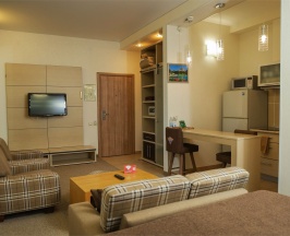 Номера категории Апартаменты Family, площадью от 52.7 м² до 53,6 м², рассчитаны на проживание до 6 гостей (4 на основные места, 2 дополнительных места на диване, либо евро раскладушка).