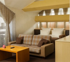 Особенностью данной категории номеров являются: высокие потолки, большие панорамные окна с прекрасным видом, а также наличие балконов.