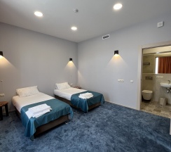 Небольшой номер с лаконичным и стильным дизайном, позволяющий комфортно разместиться одному или двоим гостям. В номере предоставлено все необходимое для полноценного отдыха.