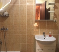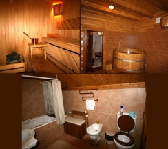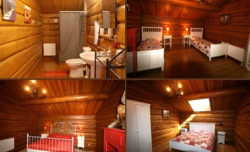 -На втором этаже :два санузла с душем, стиральная машина, гладильная доска, утюг. Четыре с пальни с двуспальными кроватями, в трех из них телевизор со спутниковыми каналами, пятая спальня с двумя отдельными кроватями и телевизором. В одной из спален есть детская кровать.