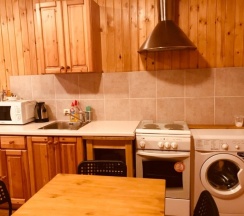 - Гостиная-кухня ( варочная панель, духовой шкаф, посудомоечная машина, микроволновая печь, холодильник, электрический чайник, комплект посуды.