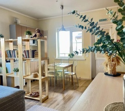 Понравилось: Понравилось всё - расположение, уют, домашняя атмосфера в номере. Продумано все до мелочей - оборудованная кухня с мультиваркой, стиральная машинка, есть где просушить белье, отдохнуть на свежем воздухе, детям есть где поиграть. Интерьер комнаты классно оформлен, душевно. Территория обалденно оформлена. В следующий раз приедем только сюда. Спасибо всем!!!