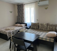 Просторный стандартный номер рассчитан на размещение 4-х гостей. В номере: двуспальная кровать, диван, санузел с душем, холодильник, микроволновая печь, спутниковое ТВ, кондиционер.