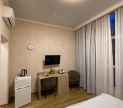 Работа турагентом обязывает проверять объекты размещения на себе. Это тот случай, когда реальность превзошла ожидания. Отель классный! Отличное расположение, перешел дорогу и ты уже на Курортном бульваре. В 700м ЖД вокзал. Мы были на машине, во дворе отеля можно поставить на парковку или вдоль улицы перед гостиницей. На первом этаже клиника. Все чисто, уютно, свежий ремонт. На этаже стояла гладильная доска с утюгом.