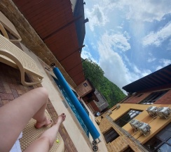 Отдельный плюс гостиницы это конечно тёплый и чистейший бассейн! Все 3 дня ребенком не вылезал, даже в дождь, очень теплый и комфортный. Для семейного отдыха идеальное место. Пешком 5 минут магазины, столовые и кафе. До центра эсто садок 15 минут. Спасибо за отдых, Гарик, ещё приедем!