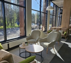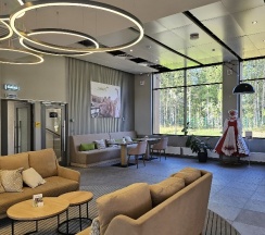 Отличный отель, все новое, современный дизайн, огромная ухоженная территория вокруг, лес, озеро. Номера небольшие, но очень уютные, удобная кровать, чистенько, тихо. Вкусные завтраки (шведский стол).