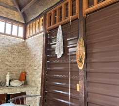 Отдыхали небольшой компанией. Сняли номера на под крышей. 2 номера и большая кухня. В каждом номере своя уборная, душевая, телевизор. В номерах чисто, уютно.