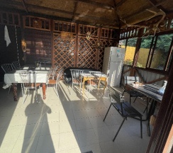 Плюсы большой номер с балконом, есть теневые занавески, всегда горячая вода, кухня для всех проживающих общая отдельно стоящая и мангал