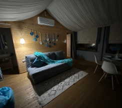 Первый наш опыт отдыха в глэмпинге, поэтому возможно будет не очень объективно. До 5 ☆ не хватило дверей в туалетах (там шторки) да-да не удивляйтесь, такое бывает))). Сам раньше не знал.. Ну и столовая... Они о сервисе только слышали издали, читали возможно... Сама обстановка супер! Кровати и диван удобные, бельё свежее. Джакузи, индивидуальные лежаки, всё в тему. Виды обалденные!!! Ступенек не бойтесь, 175 их там, пересчитал два раза. Моя двухлетняя дочь преодолевала эти ступени вверх за 3 минуты (специально засекали). Ещё бы сделать более безопасными перила для спуска из домика к джакузи, чуть не забыл. Рекомендую!!!