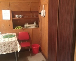 Домик для проживания до двух гостей. Он оснащен спальней с двумя односпальными кроватями. Есть обеденная зона, холодильник, газовая плита, кухонные принадлежности. Около домика своя беседка. Санузел, душ в отдельностоящем здании. Возможно проживание с домашними животными.В непосредственной близости от домиков находятся зоны с летним водопроводом, где можно умыться, и помыть посуду. Возможно предоставление детской кроватки за дополнительную плату.