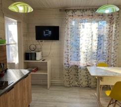 Номер в новом большом отапливаемом доме, с отдельным входом, для проживания до четырех гостей. В номере одна спальня, в которой две односпальные кровати ( спальное место 90 см) и диван кровать ( спальное место 110 см). В кухне холодильник, электрическая варочная панель на 3 конфорки, духовка, электрический чайник, телевизор с плоским экраном, обеденная зона, посуда и кухонные принадлежности.Вход в санузел и душевую из спальни. На веранде стол и стулья. Возможно предоставление детской кроватки за дополнительную плату. Возможно проживание с домашними животными.