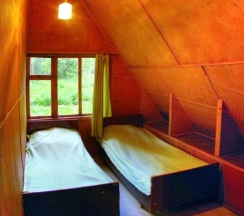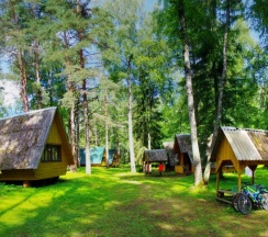 Домик для проживания до трех гостей. Он оснащен спальней с тремя односпальными кроватями. Есть обеденная зона, холодильник, газовая плита, кухонные принадлежности. Около домика своя беседка. Санузел, душ в отдельностоящем здании. Возможно проживание с домашними животными.В непосредственной близости от домиков находятся зоны с летним водопроводом, где можно умыться, и помыть посуду. Возможно предоставление детской кроватки за дополнительную плату.
