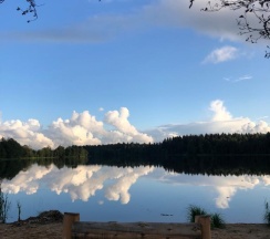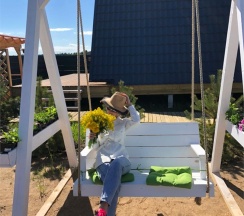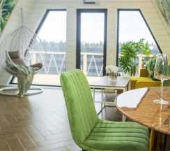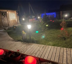 В целом все хорошо. Пятую звезду сняла за мелочи ( лампочки кое-где не заменены, в частности над кухонной зоной, отсутствие микроволновки; старый телевизор, в ветреную погоду трансляция прерывается) Конечно, мы приехали отдыхать на природу, а не смотреть телек, но вечером было бы приятно разместиться в гостиной с чашечкой ароматного чая и посмотреть фильм…пришлось с телефона))) Мебель в хорошем состоянии, посуда вся есть, если мало-администратор предоставит. Милый, заботливый и душевный персонал. Все показали, рассказали, куда лучше сходить, есть озеро на территории СНТ, есть лесное озеро в минутах 20 пешком по лесной дороге.