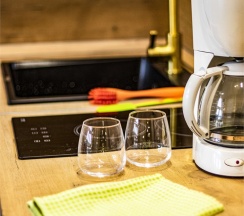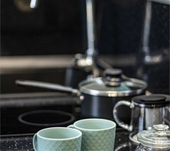 В домике есть вся нужная посуда в достаточном количестве, вместительный холодильник.